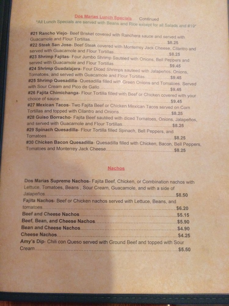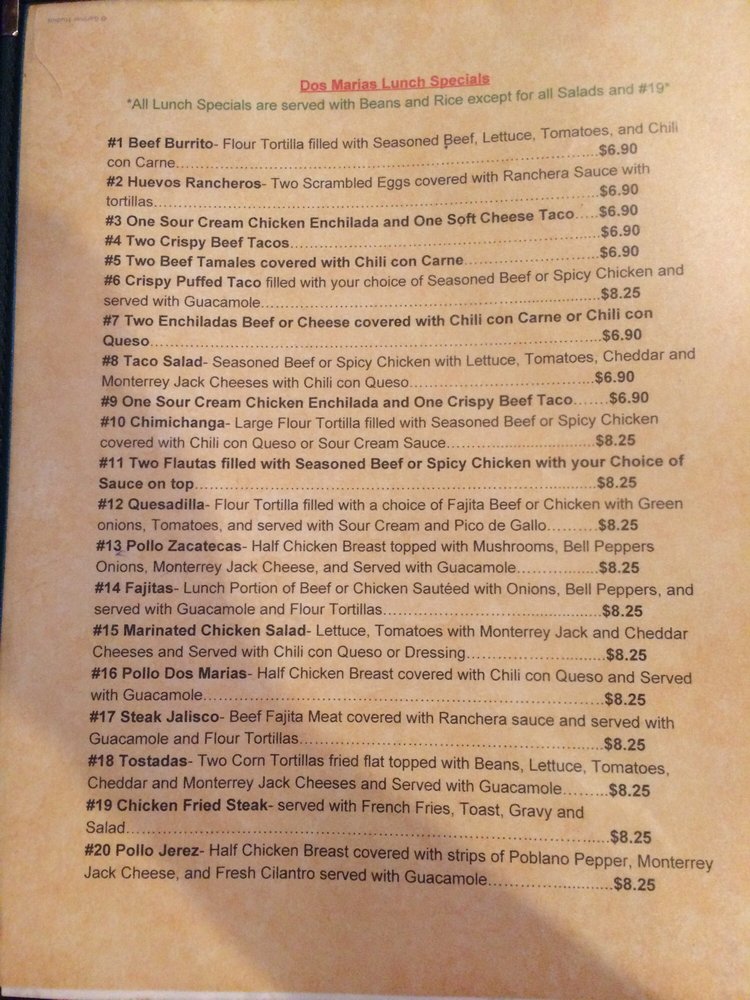 Welcome to Dos Marias, a delightful Mexican gem nestled in Paris, Texas. This inviting eatery is renowned for its hearty portions, friendly service, and casual atmosphere, making it a perfect spot for family gatherings or a quick meal on the go.